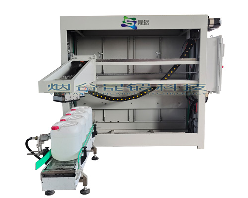 全自(zì)動(dòng)碼垛機是將已(yǐ)經灌裝完畢(bì)的小塑料桶,按一定排列碼放在托盤、棧板(木質、塑(sù)膠)上,進行自動(dòng)堆碼,可堆碼2層,然後推出,便於叉車運至倉庫儲(chǔ)存。本設備采用PLC+觸摸屏控製,實現智能化操作管理,簡便、易掌握。可大大地減少勞動力和降低勞動強度。碼垛機(jī)是輸送機輸送來的料袋、紙箱(xiāng)或是其它包裝材料按(àn)照客戶(hù)工藝要求(qiú)的工作方(fāng)式自(zì)動堆疊成垛,並將成垛的物料進行輸送的設備。